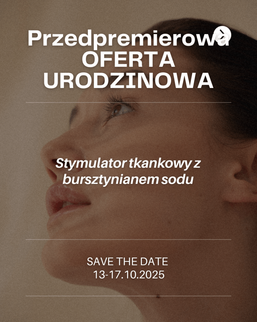 Wyjątkowa terapia, która nie tylko spowalnia procesy starzenia, ale również aktywnie odmładza skórę. Stymulator tkankowy z bursztynianem sodu działa na poziomie komórkowym – pobudza naturalną produkcję kolagenu i elastyny, regeneruje oraz ujednolica koloryt.